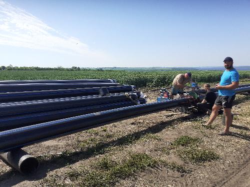 Монтаж різьбових труб. На одному краї труби нарізане різьблення зовнішнє, на іншому боці труби внутрішнє різьблення. Подібні труби використовуються для монтажу обсадних труб для свердловин.